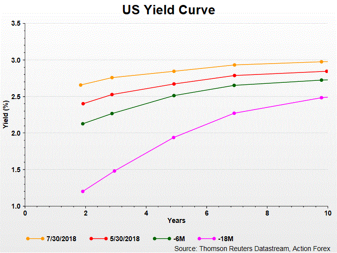 The June minutes revealed that the members discussed the term structure of interest rates. We expect the discussions would continue in August given the fact the Treasury yield curve has flattened by a greater extent since the June meeting.