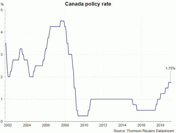 Headline CPI has been falling rather sharply after peaking in mid-2018. The January figure, at 1.4%, marked the lowest level since October 2017. Acknowledging such developments, BOC revised lowest its forecasts at the January meeting and forecast inflation to “edge further down and be below 2% through much of 2019, owing mainly to lower gasoline prices”. Yet, it added that the effects are only “transitory” and depreciation in Canadian dollar would “exert some upward pressure on inflation”, causing it to return to around the 2% “by late 2019”. Indeed, excluding volatile components such as energy prices, core CPI has remained resilient. Both of BOC’s preferred measures of CPI (CPI-trimmed and CPI- median) has stayed closed to +2%, the midpoint of the central bank’s target range.