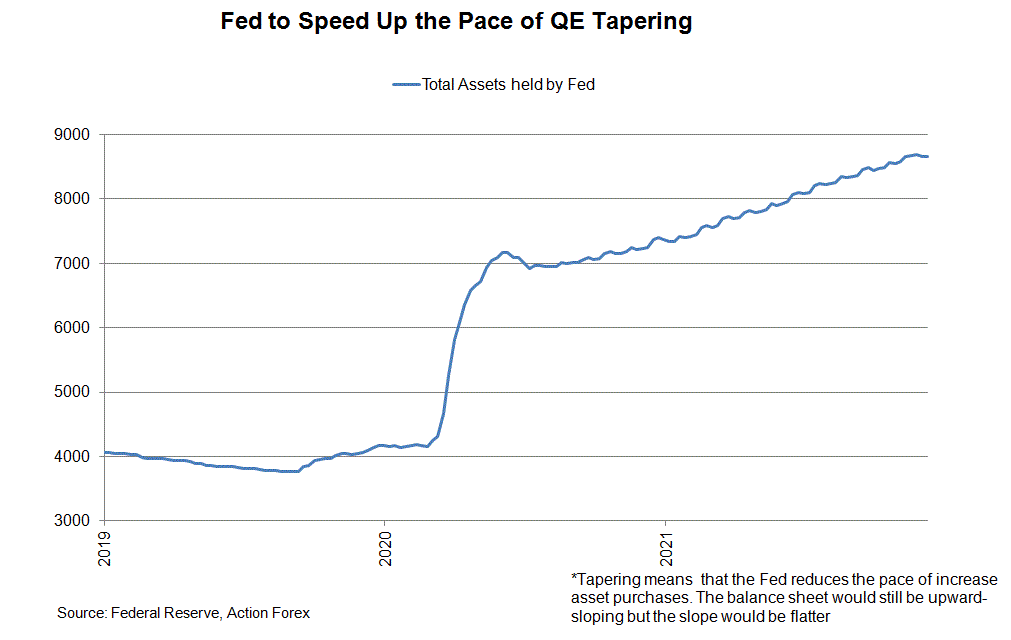 The Fed this week will announce acceleration of QE tapering. With inflation approaching 7%, policymakers would likely revise its view on inflation outlook and “retire” the word “transitory”. The updated economic projections and median dot plots showing members’ interest rate projections would also be released. The Fed funds rate will stay a 0-0.25% until mid-2022.