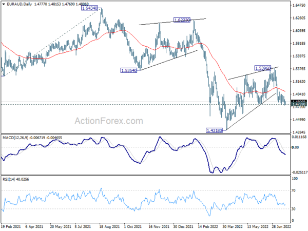 Technically, while both Euro and Aussie are firmer this week, Aussie is having a slight upper hand. Yet, it’s staying above 1.4759 minor support so far. It will be an interesting pair to watch today. Strong break of 1.4759 support will retain near term bearishness in EUR/AUD, and should send it through 1.4318 support to resume larger down trend. That could be a sign of come back of Euro bears, in particular against commodity currencies.