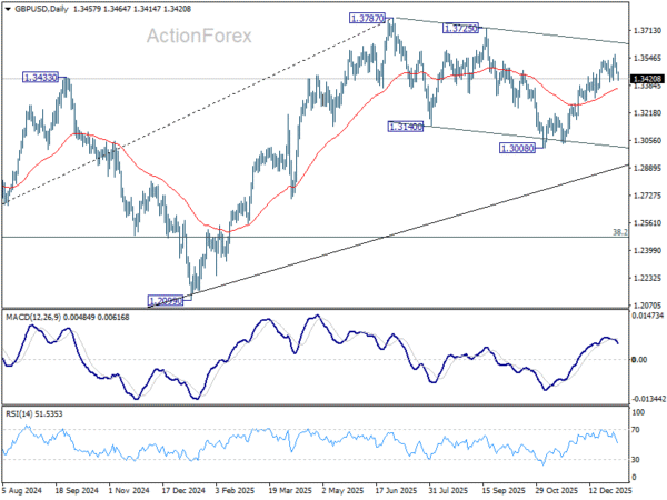 Daily Pivots: (S1) 1.3436; (P) 1.3477; (R1) 1.3497; More…