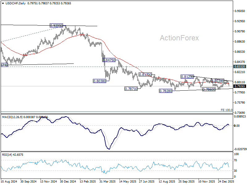 Daily Pivots: (S1) 0.7951; (P) 0.7987; (R1) 0.8012; More….
