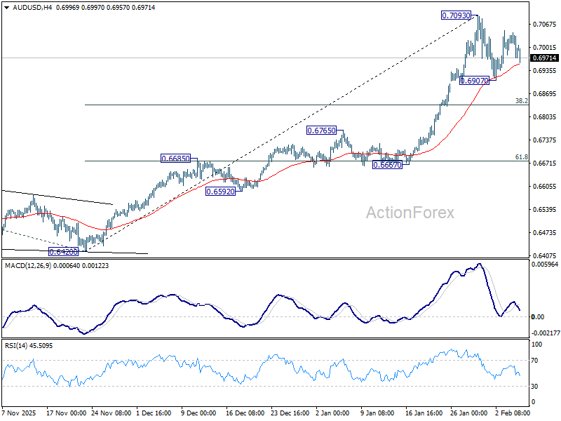 Daily Pivots: (S1) 0.6966; (P) 0.7004; (R1) 0.7037; More...