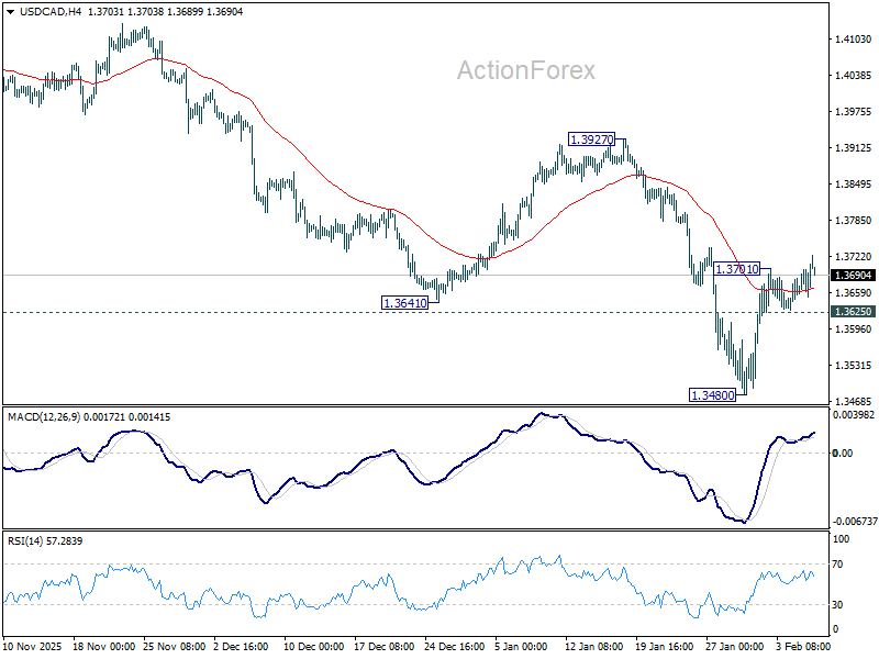 Daily Pivots: (S1) 1.3673; (P) 1.3693; (R1) 1.3733; More