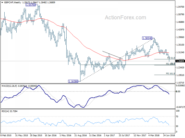 We sold EUR/JPY at open at (128.60) last week. Initial rebound made the strategy look shaky. But our stop at 129.60 wasn’t hit. And subsequent decline to as low as 126.00 is inline with our expectation. In the last update, we lowered the stop to 128.10, and this has to be lowered further for sure. In the bigger picture, we’re expecting fall from 131.97 to have a test on 124.61 low at least. Meanwhile, the fall from 129.44 has gone well past 100% projection of 131.13 to 128.49 from 129.44 at 126.88 already. It argues that EUR/JPY is heading to 161.8% projection at 125.16 in near term. Hence, we don’t want to tightening up the stop too much. Considering all, we’ll lower the stop to 127.45, slightly above 127.38 minor resistance and 38.2% retracement of 129.44 to 126.00 at 127.31. We’ll still tentatively target to take profit at 124.61. But we’ll see how it goes when EUR/JPY drops below 125.00.
