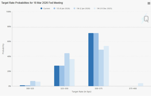 A key anchor for that repricing was the labor market. While December payroll growth was modest at 50k, the unemployment rate fell from a revised 4.5% in November to 4.4%, reinforcing the view that labor conditions remain tight despite slowing hiring momentum. That combination leaves the Fed with little incentive to rush into another “insurance cut.” With wage growth still firm and unemployment low, policymakers can afford to wait for clearer signs of deterioration before shifting stance.