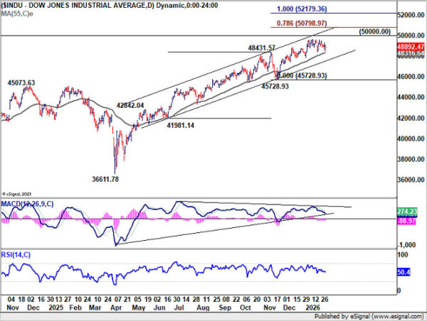 For now, the path of least resistance still points higher, with a break above 50,000 marginally favored. But even in that scenario, upside is unlikely to be smooth. Technical resistance is expected near 78.6% projection of 41,981.14 to 48,431.57 from 45,728.93 at 50,798.97 to limit upside.
