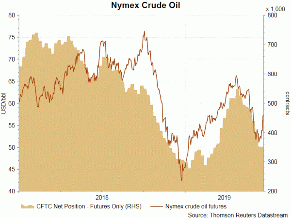 According to the CFTC Commitments of Traders report for the week ended June 18, NET LENGTH for crude oil futures rose +24 140 contracts to 363 087 for the week. Speculative long positions fell -12 708 contracts but shorts declined by a sharper -24 140 contracts. Escalated tensions between US and Iran have drove away the bears. Yet, the bulls need more confirmation to bet for higher prices. We expect NET LENGTH to rise further in the coming week. For refined oil products, NET LENGTH for gasoline added +830 contracts to 73 124, while NET SHORT for heating oil dropped -5 754 contracts to 18 302 for the week. NET SHORT for natural gas futures rose +10 351 contracts to 137 299 contracts for the week.