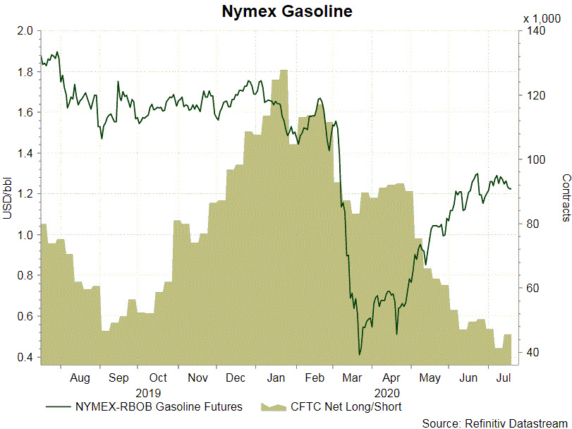 According to the CFTC Commitments of Traders report for the week ended July 14, NET LENGTH for crude oil futures gained +4 434 contracts to 539 751 for the week. Speculative long positions rise +5 715 contracts while shorts added +1 281 contracts. For refined oil products, NET LENGTH for gasoline increased +4 202 contracts to 45 585, while NET LENGTH for heating oil futures added +1 626 contracts to 5 818. NET SHORT for natural gas futures dived -40 654 contracts to 14 255 contracts for the week.