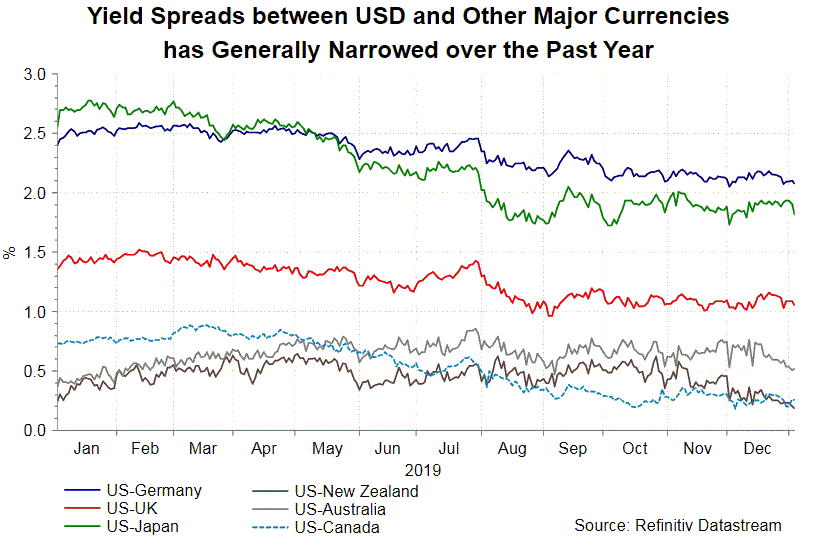 Although the December FOMC minutes signaled that the members are comfortable with the current level of interest rates, the market expects that there will be at least one more rate cut this year. Meanwhile, the three rounds of rate cuts in 2H19 have brought the interest rates to 1.5-1.75%, making US yields not more attractive than other currencies.