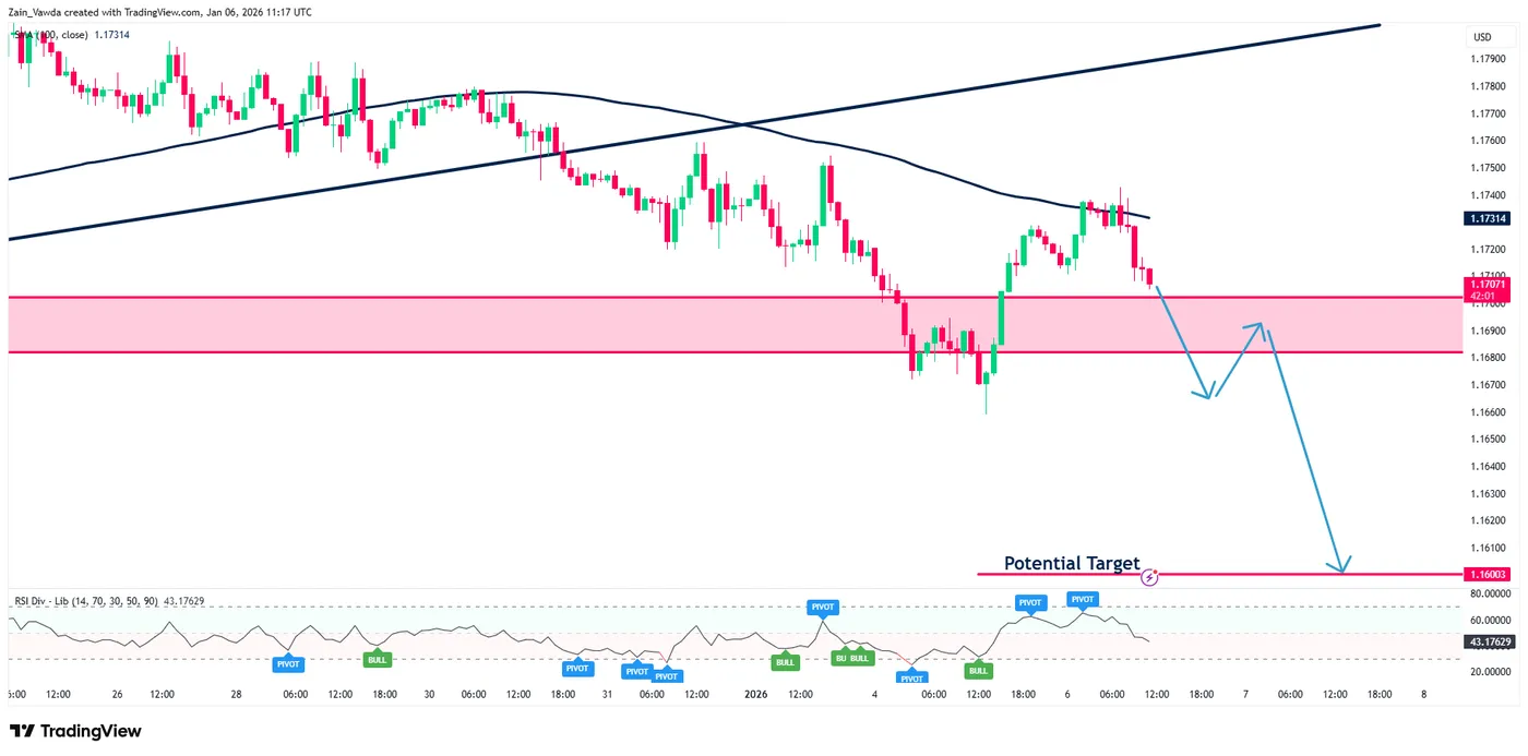 EUR/USD Four-Hour Chart, January 6, 2026