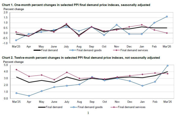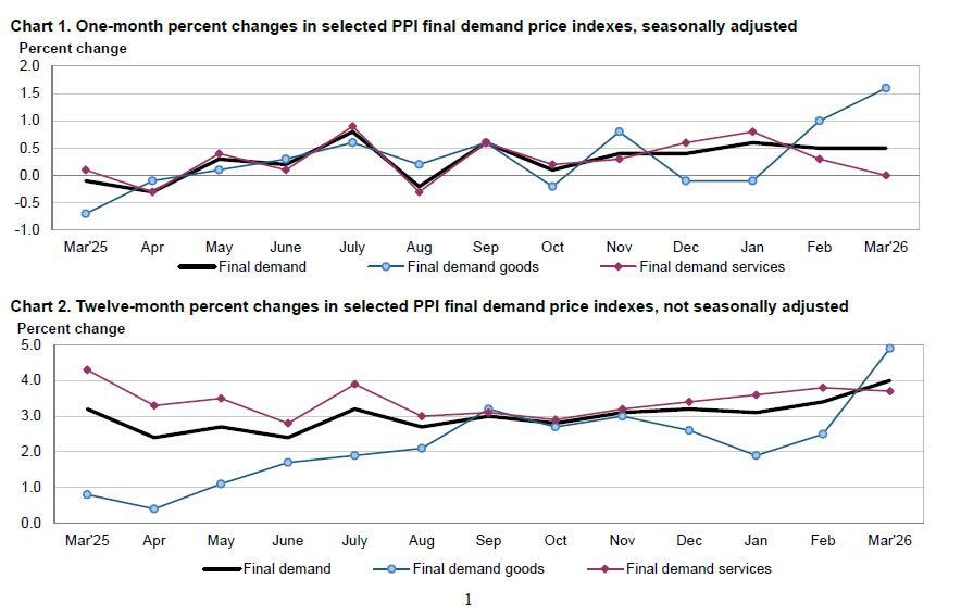 US producer prices rose in March, driven largely by a surge in energy costs, though the overall increase came in below expectations. Headline PPI climbed 0.5% mom, up from prior months but well short of the 1.2% mom forecast. On an annual basis, PPI accelerated from 3.4% yoy to 4.0% yoy, also missing expectations of 4.6% yoy, marking the largest 12-month gain since early 2023.
