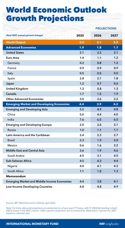Under its baseline assumption that the conflict remains limited, the IMF projects global growth to slow to 3.1% in 2026 before edging up to 3.2% in 2027. Inflation is expected to rise modestly in 2026 due to energy costs before resuming its decline. However, even this relatively benign scenario points to a fragile balance between slowing growth and lingering price pressures.
