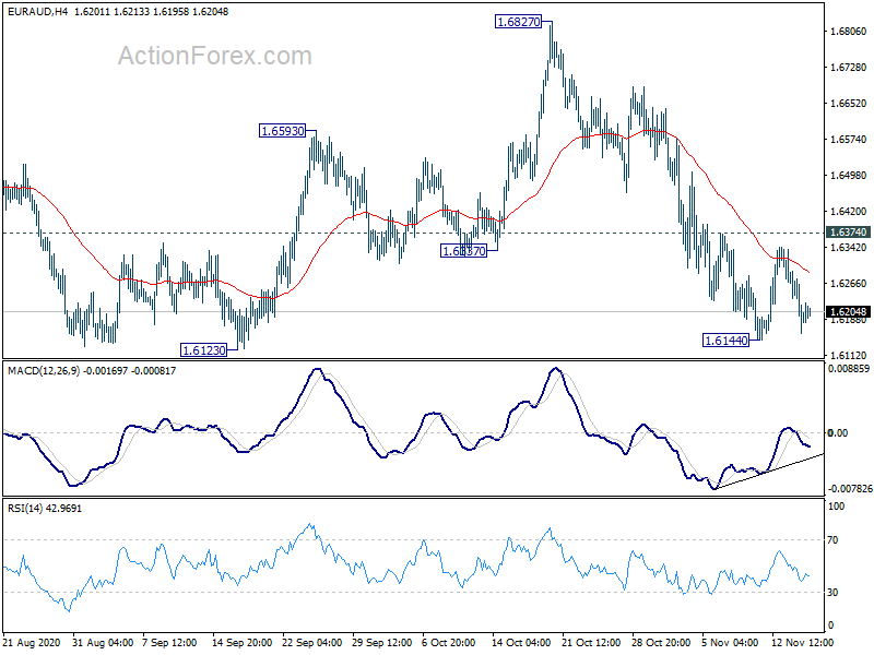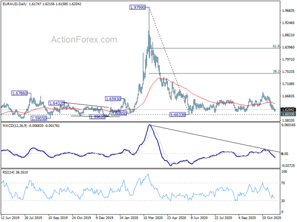 EUR/AUD retreated after hitting 1.6420 and intraday bias is turned neutral. We’re viewing rebound from 1.6122 as a rising leg in the consolidation pattern from 1.6033. Above 1.6420 will target 1.6827 resistance. On the downside, though, break of 1.6122 will bring retest of 1.6033 low.