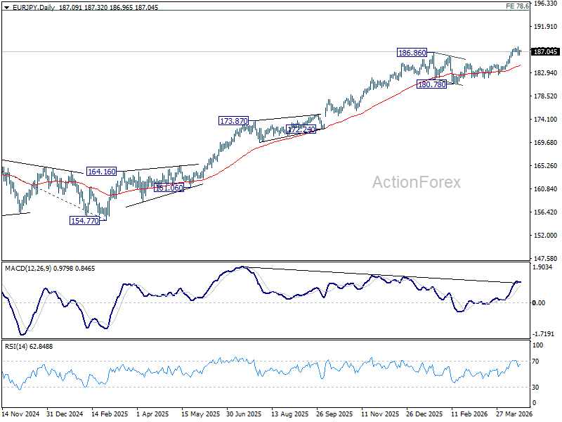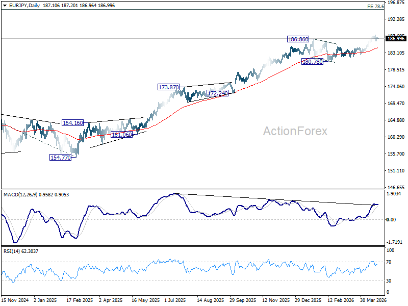 In the bigger picture, up trend from 114.42 (2020 low) is in progress Next target is 78.6% projection of 124.37 (2022 low) to 175.41 (2025 high) from 154.77 at 194.88 next. For now, medium term outlook will stay bullish as long as 180.78 support holds, even in case of deeper pullback.