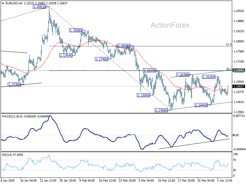 EUR/USD's rebound stalled at 1.1626 and reversed, but it's still bounded in established range. Intraday bias stays neutral first. With 1.1666 cluster resistance (38.2% retracement of 1.2081 to 1.1408 at 1.1665) intact, further decline is expected. On the downside, firm break of 1.1408 will resume the fall from 1.2081 to 38.2% retracement of 1.0176 to 1.2081 at 1.1353. However, decisive break of 1.1666 will argue that the fall from 1.2081 has completed, and turn bias back to the upside for 61.8% retracement of 1.2081 to 1.1408 at 1.1824.