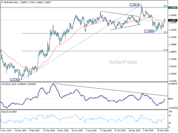Daily Pivots: (S1) 1.1658; (P) 1.1692; (R1) 1.1733; More….