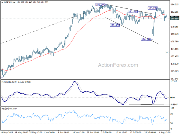 In the bigger picture, up trend from 123.94 (2020 low) is in progress. Next target is 195.86 (2015 high). This will now remain the favored case as long as 176.29 support holds, even in case of deeper pull back.