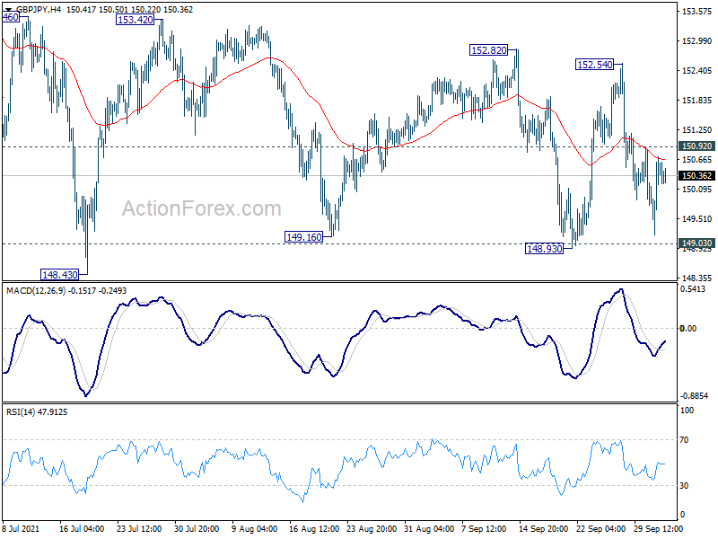 Intraday bias in GBP/JPY remains on the upside at this point. Current up trend from 123.94 should target 61.8% projection of 136.96 to 156.05 from 148.93 at 160.72 next. On the downside, below 155.32 minor support will turn intraday bias neutral and bring consolidations first, before staging another rally.