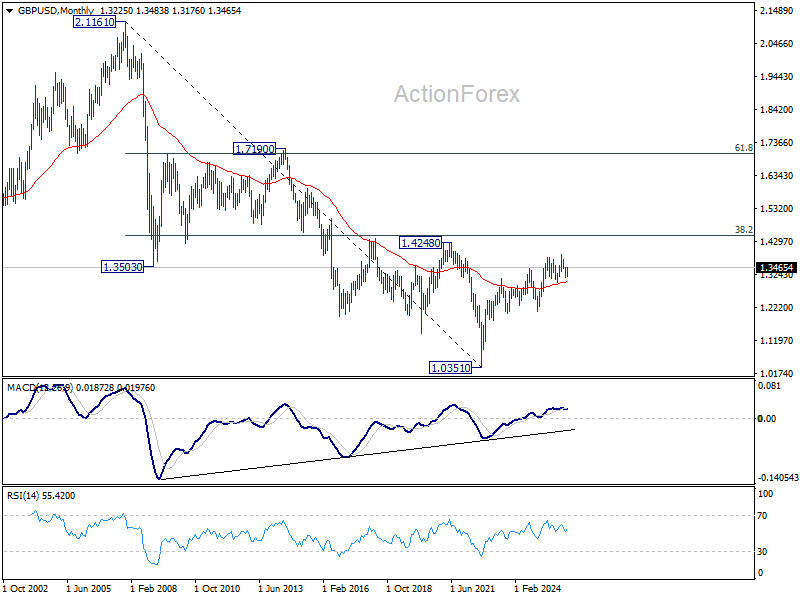 In the long term picture, as long as 1.4248/4480 resistance zone holds (38.2% retracement of 2.1161 to 1.0351 at 1.4480), the long term outlook will remain bearish. That is, price actions from 1.0351 are seen as a corrective pattern to down trend from 2.1161 (2007 high) only. Nevertheless, decisive break of 1.4248/4480 will be a strong sign of long term bullish reversal.