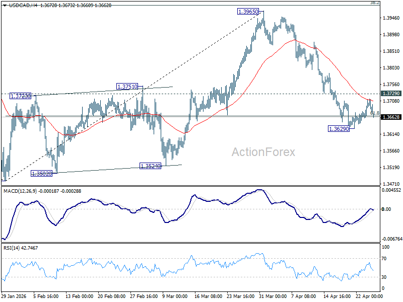 Daily Pivots: (S1) 1.3652; (P) 1.3663; (R1) 1.3684; More...