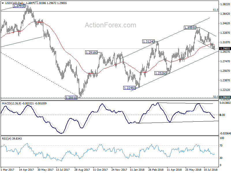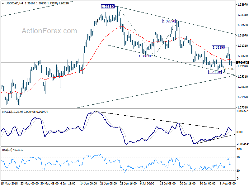 Despite breaching 1.3170 minor resistance, there was no follow through buying in USD/CAD. And it quickly retreats. Intraday bias stays neutral first. Still, as long as 1.3049 minor support holds, we’re favoring the bullish case. That is, correction from 1.3385 should have completed with three waves down to 1.2961. On the upside, firm break of 1.3170 will target 3289 resistance first. Break there will likely resume larger rise from 1.2061 through 1.3385 high. On the downside, though, break of 1.3049 minor support will dampen this bullish view and turn focus back to 1.2961 low instead.