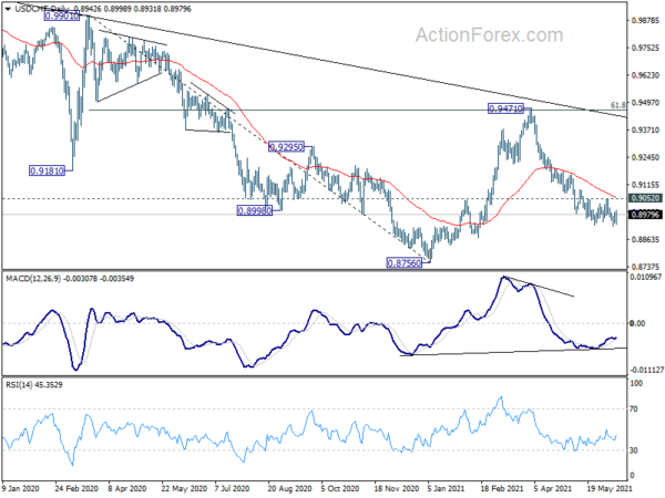 In the bigger picture, medium term bearishness is neutralized by strong break of 55 week EMA. Focus is back on 0.9471 resistance. Sustained break there will indicate completion of whole decline from 1.0342 (2016 high). Medium term outlook will be turned bullish for a test on 1.0342 high.