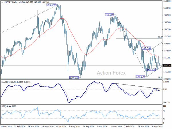 Daily Pivots: (S1) 142.89; (P) 143.50; (R1) 144.62; More…