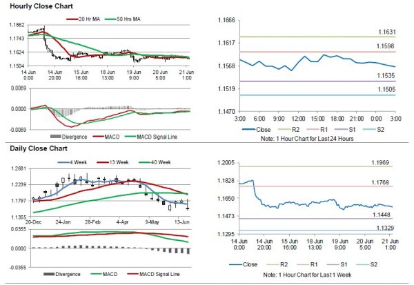 In the Asian session, at GMT0300, the pair is trading at 1.1566, with the EUR trading 0.09% lower against the USD from yesterday’s close.