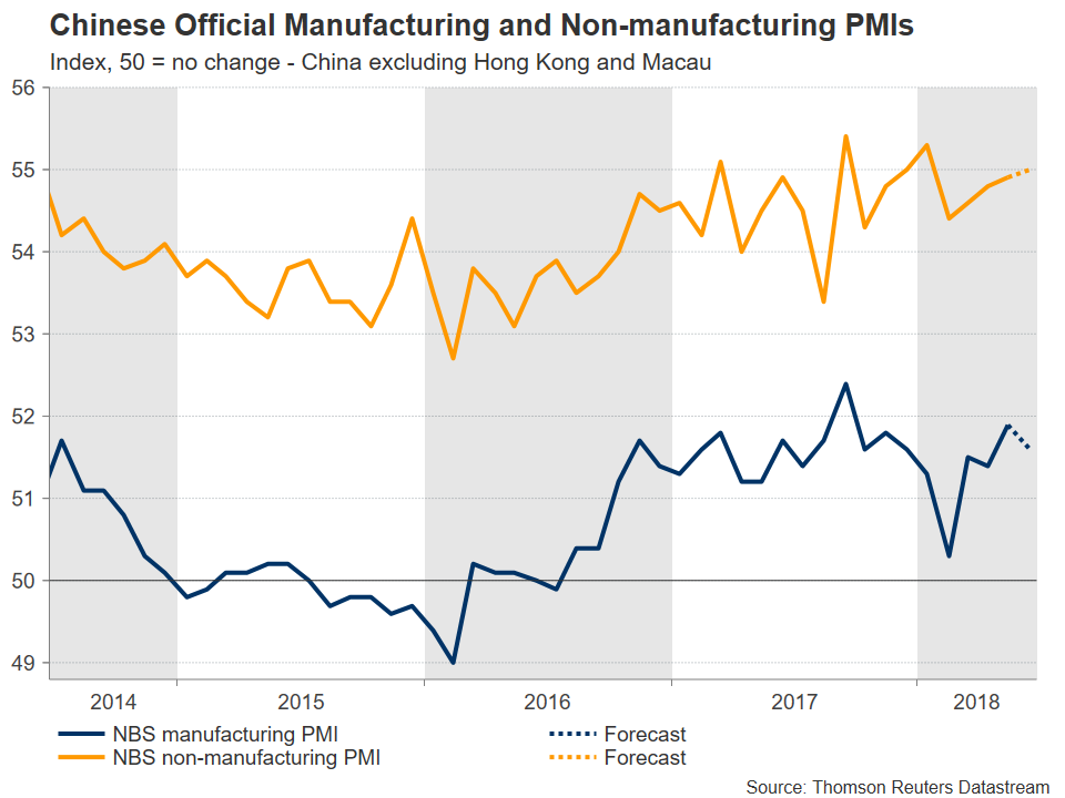 Lastly, Caixin’s manufacturing and non-manufacturing PMI figures, which focus on small and medium size Chinese businesses, as opposed to the official data which are broader in nature, are due out next week (on Monday and Wednesday correspondingly).