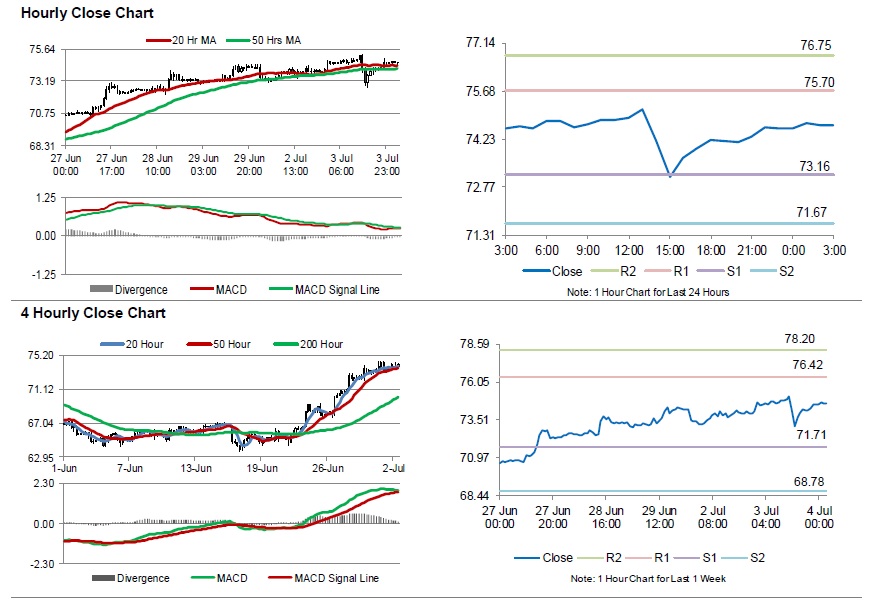 In the Asian session, at GMT0300, the pair is trading at 74.64, with oil trading 0.11% higher against the USD from yesterday’s close.