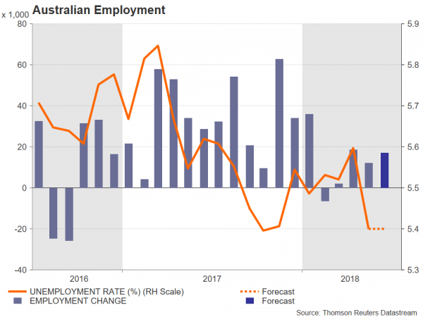 Turning to the upcoming data, in June, Australia’s unemployment rate is projected to have held steady at a five-year low of 5.4%. Meanwhile, the net change in employment is forecast to have risen by 17k, above both the 12k increase in May and the average for this year (12.4k).