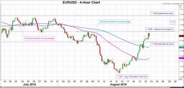 During its meeting in July, the ECB continued to provide the same guidance as in the policy gathering that preceded. Specifically, it reiterated that it plans to end its asset purchases by the end of 2018, while it continued to communicate steady rates “at least through the summer of 2019”, something which was interpreted as ultra-dovish by market participants when it was first expressed, leading to considerable losses for the common currency.