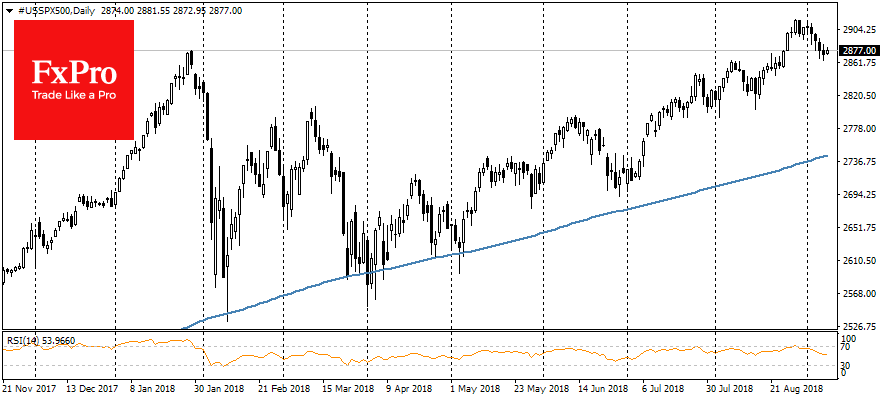 The dollar index is trading near 94.45, adding almost 0.6% after the release of the statistics for August. MSCI for Asia-Pacific region declined by 3.5% last week and remains under pressure on Monday, losing 0.6% due to fears of trade wars.