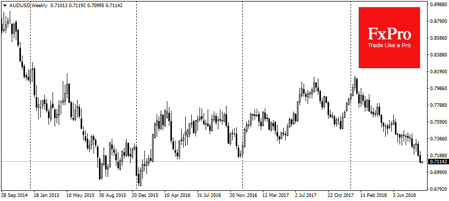 Very often, the Aussie can be considered as a canary in coal mine for the world trade in general and Chinese industry in particular. The fall of the Australian dollar to 31-months lows, despite a strong growth of the country’s GDP, can be seen as an important leading indicator of China’s dynamics, as Australia is a major supplier of raw materials for Asian factories. And now, AUDUSD is traded near 0.71, which is just a couple of steps from 0.68 – the lows to the beginning of 2016, when the fear of a hard landing of China’s economy came over the market.