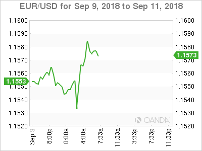 EUR/USD (€1.1583) off its worst level as Italian official continued their pacifying comments on the 2019 budget. Techies note that €1.1750 remains the key resistance for now.