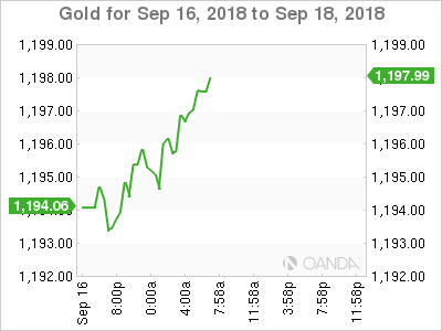 Ahead of the U.S open, gold prices have inched a tad higher as speculators look for short-term gains, amid increasing Sino-U.S trade tensions and prospects of further Fed interest rate hikes. Spot gold is up +0.2% at +$1,195.83 an ounce, after falling -0.6% on Friday when it marked its third straight weekly decline. U.S gold futures are down -0.1% at +$1,199.80.