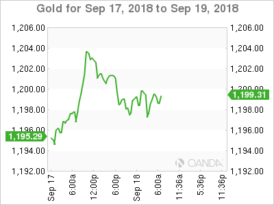 Ahead of the U.S open, gold prices are under pressure as the ‘big’ dollar steadies amid concerns of an escalation in Sino-U.S trade tensions. Spot gold is -0.3% lower at +$1,197.51 an ounce, after rising +0.6% in Monday’s session. U.S gold futures are down -0.3% at +$1,202.20 an ounce.