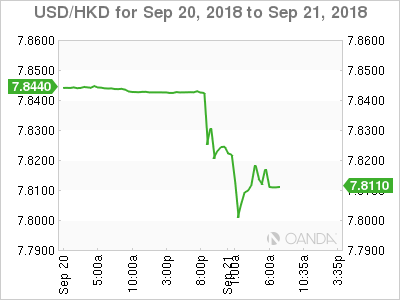 The HKD rallied to $7.8244, hitting its highest levels since late February. Since March, it had stayed near $7.85, the lower end of the Hong Kong Monetary Authority’s (HKMA) managed trading band.