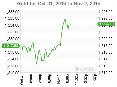Ahead of the U.S open, gold has recovered overnight from yesterday’s three-week low print as the recent drop in metal prices and an easing of the U.S dollar from multi-month highs encouraged buying. Spot gold is up +0.8% at +$1,222.41 per ounce, after falling for three consecutive sessions – the ‘yellow metal’ touched +$1,211.52 per ounce on Wednesday. U.S gold futures are up +0.9% at +$1,225.4 an ounce.