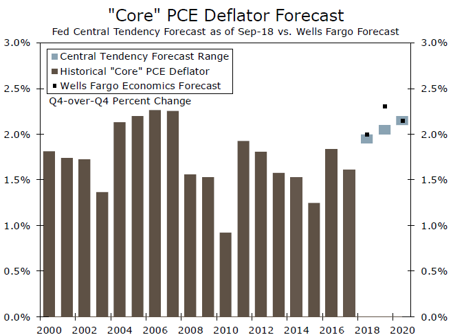 Collectively, there was little in today’s statement that would suggest any change from the expectation for further gradual rate hikes. Forward guidance remained intact as the Fed sees the economy moving in the right direction against the pace of policy action taken so far. We look for GDP growth to continue to run above potential in the coming quarters, though it should generally decelerate as fiscal stimulus fades and monetary policy exerts greater headwinds on the economy. We expect the unemployment rate to steadily decline over the coming year as employers continue to add jobs to meet demand. Moreover, rising labor and material costs should continue to generate additional inflation pressures in 2019. As next year comes into view, we believe economic conditions will remain strong enough for the Fed to continue raising interest rates each quarter until Q3-2019, which if realized, pushes the federal funds target rate modestly into “restrictive” territory.