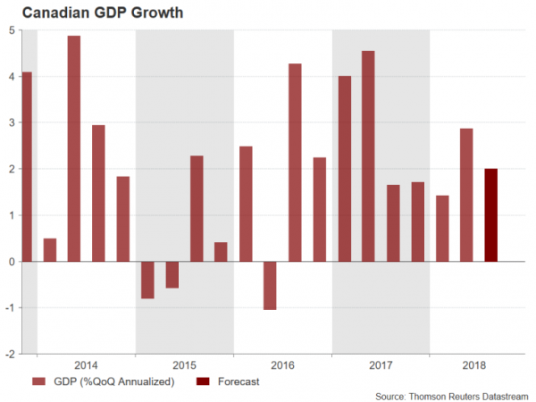 The Canadian dollar has slid about 4% since the beginning of October on the back of the sell-off in crude oil – Canada’s biggest export earner. The currency’s weakness comes despite a mostly solid run of economic indicators out of Canada in recent months, which has allowed the Bank of Canada to pursue a monetary tightening path. Investors will therefore be watching Friday’s third quarter GDP release, due at 13:30 GMT, for clues as to how soon the next BoC rate hike can be delivered.