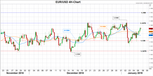 In FX markets, EURUSD may retest the area around the 50-period simple moving average, currently at 1.1415, if economic confidence shrunk faster than analysts forecast, raising a warning flag for growth outlook. Breaking below that zone, the pair could fall towards 1.1350 where some support was identified during December, while if this fails to hold, then the next stop could be between 1.1275 and 1.1266.