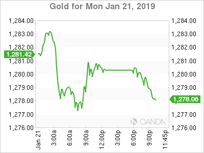 Gold lost 0.23 percent on Monday. The yellow metal is on the back foot as slow growth in China could be the catalyst for the end of the trade war between China and the United States. Investors lost their appetite for the precious metal as a refuge during the Martin Luther King holiday.