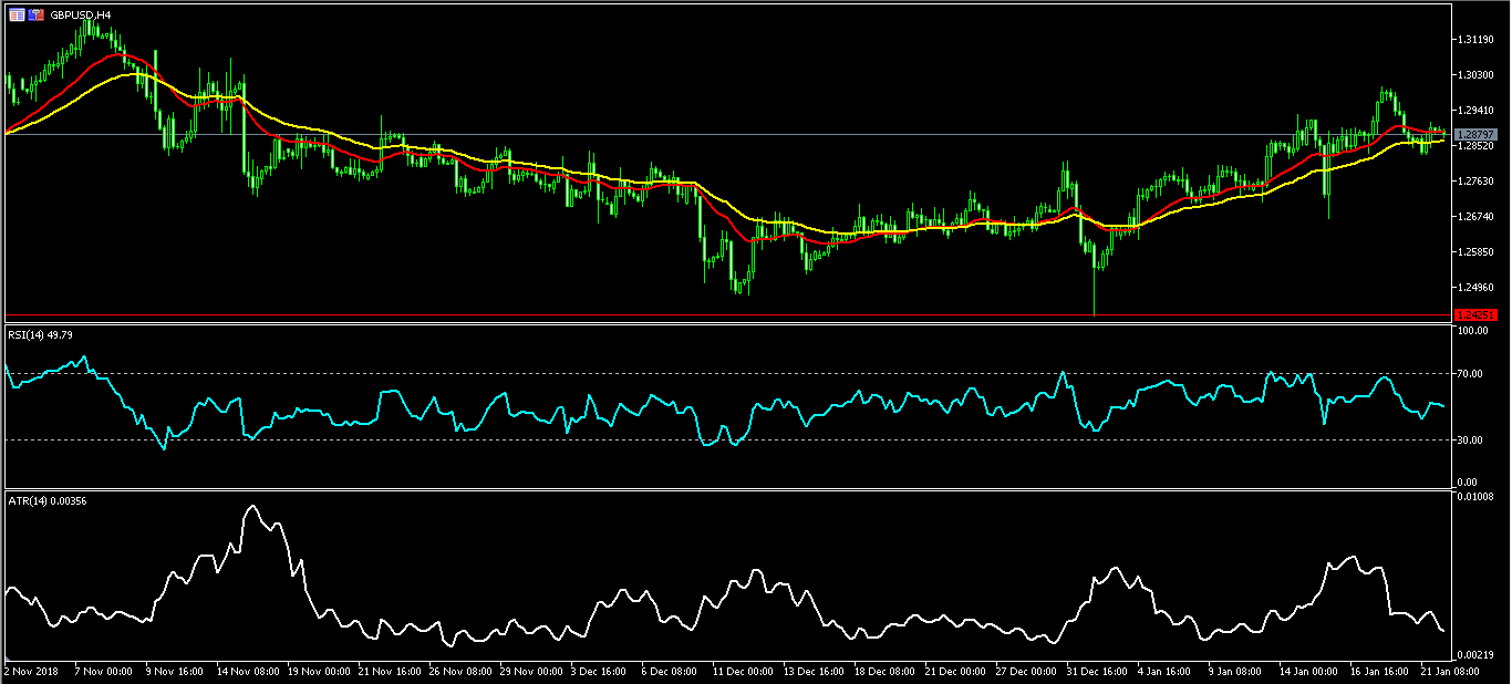 The GBP/USD pair was little moved after Theresa May’s speech. The pair is now trading along the 1.2880 level, which is closer to the short and medium-term EMAs on the four-hour chart. The RSI remains between the overbought and oversold levels while the Average True Range Indicator has continued to decline. The pair could continue moving lower to test last week’s low of 1.2670.