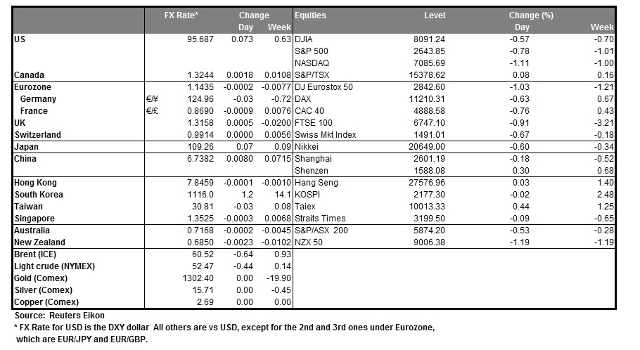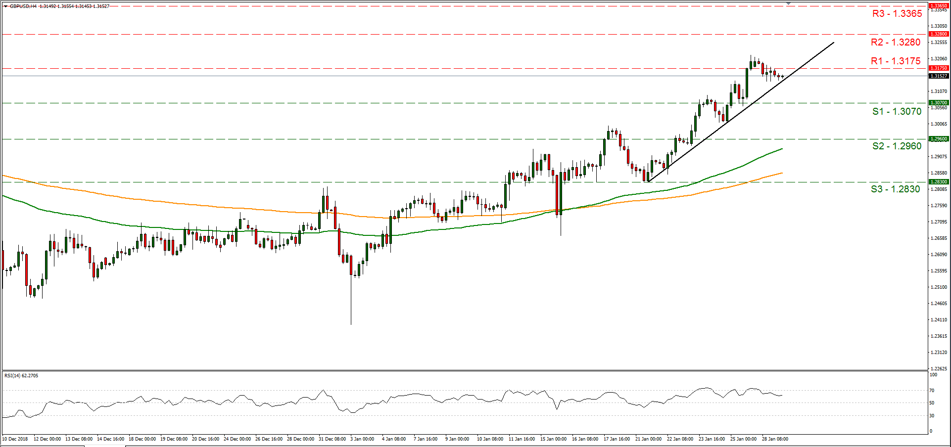The UK parliament is to vote on Theresa May’s revised Brexit plan, with 60 days left for the UK to leave the EU. Analysts currently seem to maintain the opinion that should Theresa May’s plan B pass, we could see the pound strengthening. On the other hand, should Parliament opt to pass an amendment (Cooper) delaying Brexit by extending article 50, in case of no deal by February 26th, the pound could also be supported, as imminent danger is being postponed. It should be noted that a no deal Brexit cannot be ruled out and an amendment tabled to scrap the Irish backstop (Brady), if voted by the UK parliament could raise the chances for such a scenario. Media reported that Theresa May, could be preferring the Brady amendment, as in such a scenario the UK Parliament would be sending a clear message to Brussels about the Irish backstop. We expect the event to create high volatility for the pound and should the UK parliament move towards an agreed Brexit solution we could see the pound strengthening. Please be advised that media indicate that the voting will take place in the UK evening, probably begin at 19:00 (GMT). Cable maintained a sideways motion yesterday, below the 1.3175 (R1) resistance line. Technically, it should be noted that the pair’s price action threatens to break the upward trendline incepted since the 21st of January, making the particular moment a make or break point for the pair’s direction. Should the pair break the prementioned upward trendline we could see it maintaining a sideways movement, if not we maintain the bullish momentum. Should the bulls dictate the pair’s direction, we could see the pair breaking the 1.3175(R1) resistance line and aim if not break the 1.3280 (R2) resistance level. Should the bears take over we could see cable, breaking the 1.3070 (S1) support line and aim for the 1.2960 (S2) support level. The pair’s price action is expected to show high volatility (to either direction) today, as the UK parliament will be having another vote regarding Brexit, so some caution is advisable as in extreme case scenarios, we could see cable breaking all three support or resistance levels.