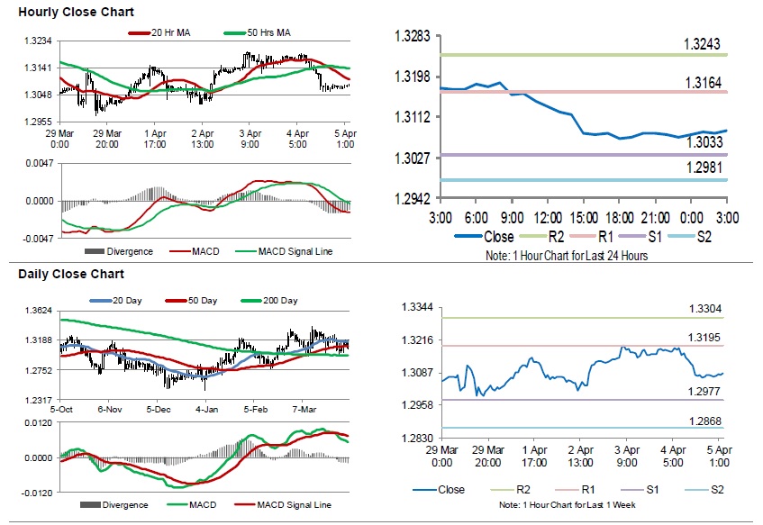 The pair is expected to find support at 1.3033, and a fall through could take it to the next support level of 1.2981. The pair is expected to find its first resistance at 1.3164, and a rise through could take it to the next resistance level of 1.3243.