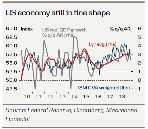As expected, the Fed left the target range unchanged at 2.25-2.50% and overall there were no major changes to the policy signals (Powell said the IOER rate cut was a technical adjustment and not an expression of an easing bias, see more below). On one hand, the Fed said economic growth and the labour market remain strong but on the other hand, inflation is running below the 2% target
