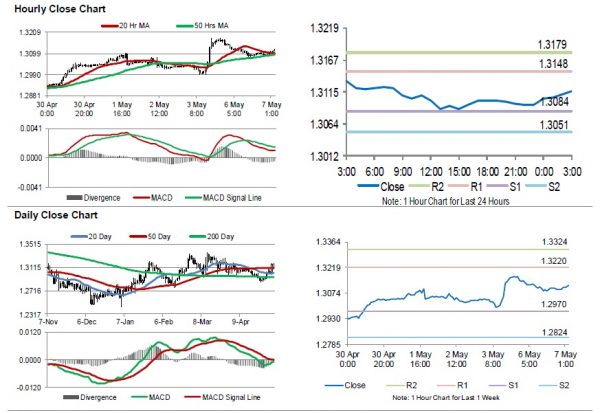 In the Asian session, at GMT0300, the pair is trading at 1.3117, with the GBP trading 0.18% higher against the USD from yesterday’s close.