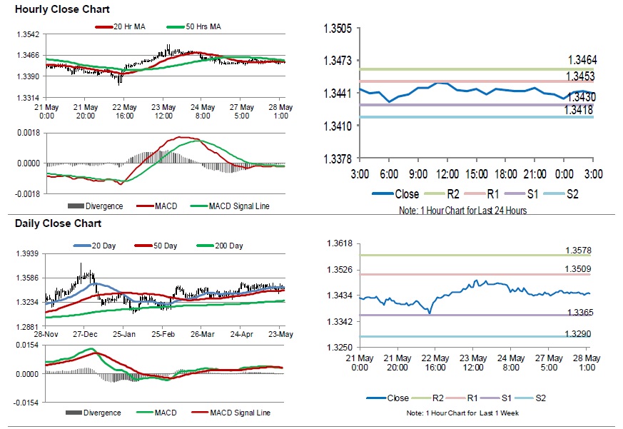 The pair is expected to find support at 1.3430, and a fall through could take it to the next support level of 1.3418. The pair is expected to find its first resistance at 1.3453, and a rise through could take it to the next resistance level of 1.3464.